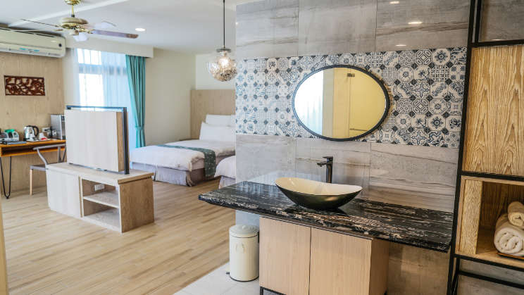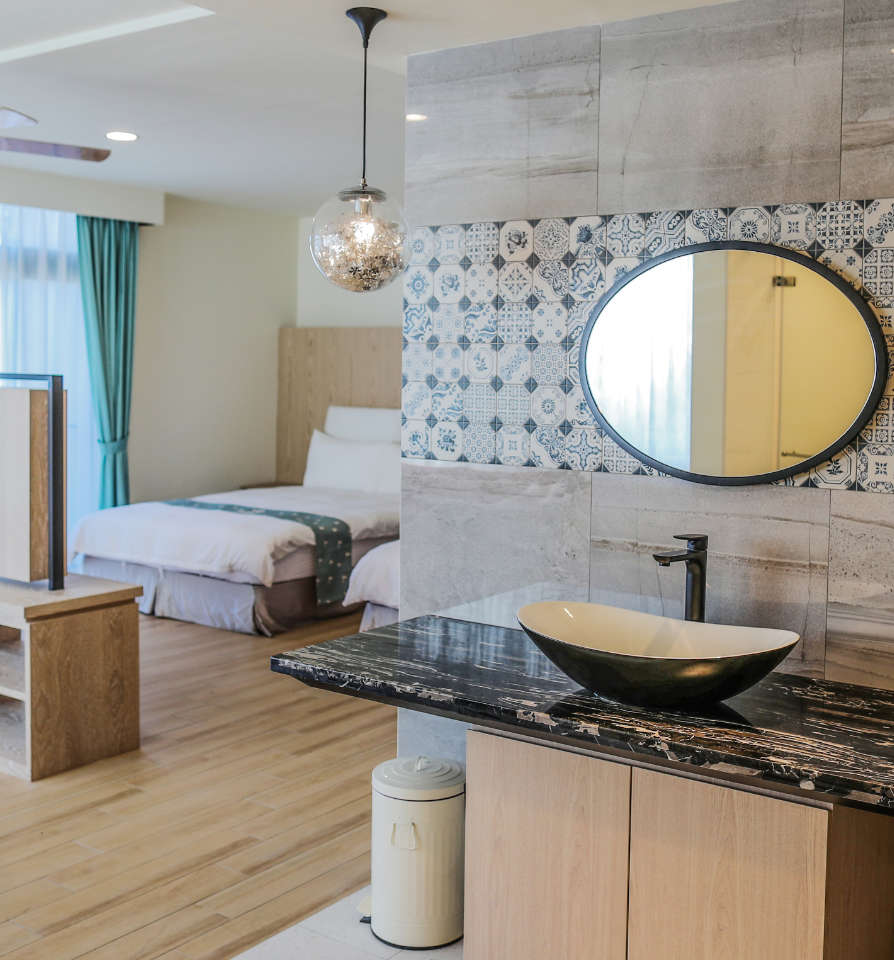 This spacious room offers a stunning tri-view of the majestic Rock Islands, bustling street, and picturesque yacht harbor. The large windows provide ample natural light and breathtaking views from the comfort of your room. Whether you're looking to unwind and soak up the serene mountain surroundings or watch the hustle and bustle of the street and harbor, this room has something for everyone. Features: Private bathroom • Free toiletries • Slippers • Bathrobe • Hair dryer • Shower • Toilet • Towels • Bed linen • Socket near the bed • Wake up service / alarm clock • Seating area • Flat screen TV • Refrigerator • Tea / coffee maker • Fan • Air conditioning • Telephone • Private entrance • Upper floor accessible by elevator • NON-SMOKING